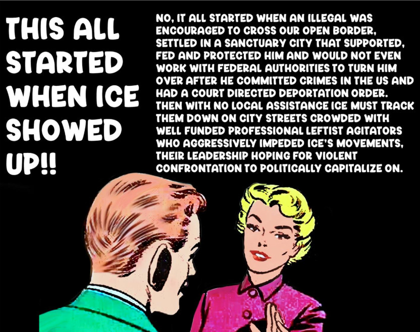 Hence, they are extremely conformist to the moral norms of their community—terrified of the social censure that would come from the social consensus which now means supporting the attacks on ICE. This is what one might call the paradox of individualism: individualist conformism. It’s obvious that at present the moral norms of the community prescribe supporting illegals, excusing immigrant crime, and advocating for violence and harassment directed at federal officers.